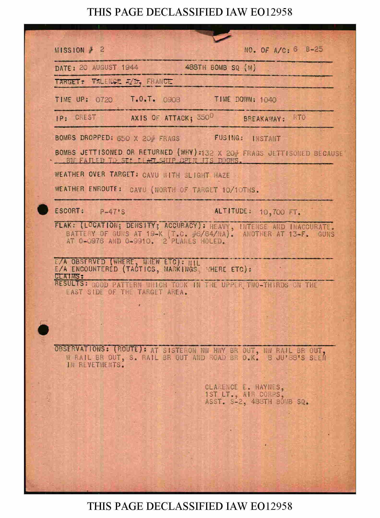 August 20, 1944 Valence/La Tresorerie L.G. (Aerodrome)